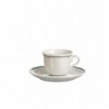 La linea Rinascimento Greenline, fa rivivere i sottili ornamenti, leorlature e i capitelli delle forme classiche, con effetto di squisita morbidezza dilinee per una tavola elegante. Il servizio è impreziosito da una sottile linea in colore verde sul bordo