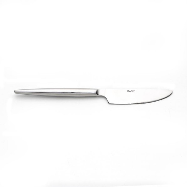 Una linea di posate in acciaio inox 18/10, dal design moderno e lineare. La misura unica del cucchiaio, forchetta e coltello lo rendono adatto per bistrot e mise en place curate ma poco formali.