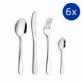 La confezione comprende 6 Cucchiai Tavola, 6 Forchette Tavola, 6 Coltelli Tavola, 6 Cucchiaini. Una linea semplice e robusta, adatta a molteplici utilizzi. La finitura SATINATA rende la posata originale ed esclusiva.