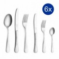 La confezione comprende 6 Cucchiai Tavola, 6 Forchette Tavola, 6 Coltelli Tavola, 6 Forchette Frutta, 6 COltelli Frutta, 6 Cucchiaini. Una linea moderna ed elegante ideale per una tavola lineare e curata. Lo speciale trattamento VINTAGE rende la posata molto originale e in linea con le attuali tendenze della tavola.