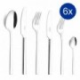 La confezione comprende 6 Cucchiai Tavola, 6 Forchette Tavola, 6 Coltelli Tavola, 6 Cucchiaini. Una linea stilizzata moderna ideale per una tavola lineare dallo stile contemporaneo.