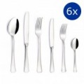 La confezione comprende 6 Cucchiai Tavola, 6 Forchette Tavola, 6 Coltelli Tavola, 6 Forchette Frutta, 6 Coltelli Frutta, 6 Cucchiaini. La linea Ninfea è una forma classica di posateria, ideale per banchetti e mise en place all'interno di locali di tradizione.
