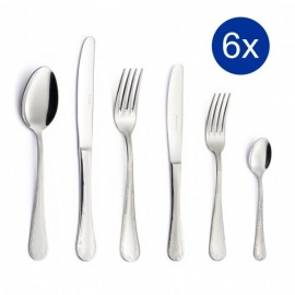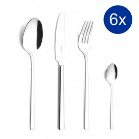 La confezione comprende 6 Cucchiai Tavola, 6 Forchette Tavola, 6 Coltelli Tavola, 6 Cucchiaini. Una linea di posate in acciaio inox 18/10, dal...